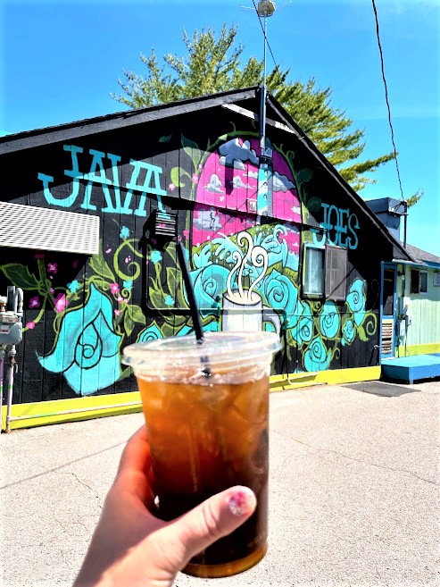 Start your day at Java Joe’s Cafe for breakfast (open seasonally). A unique cafe with paintings on the floors and walls and an amazing selection for breakfast. Seriously, there are over 15 ways you can have your pancakes on the menu! Pretty remarkable. But if you didn’t want to sit down and eat, you can also just order coffee to go at the counter.