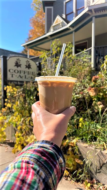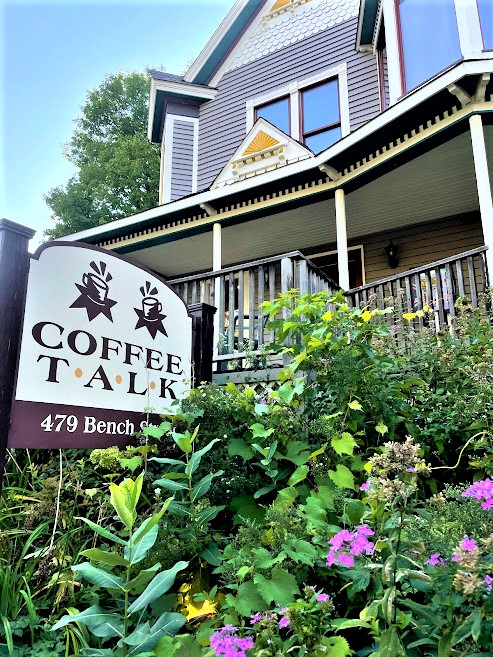 Coffee Talk is the cutest place right in the main part of town. Set in a Victorian house with a lower and upper level that has cute nooks and crannies that you can comfortably spend a couple of hours in. Or, if you want to be outside, there’s seating in the front porch and also a picturesque, wooded back patio area.
