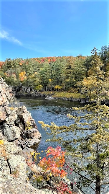 Since I visited Taylors Falls in the fall, I wanted to see as many leafy viewpoints as possible, and this overlook is the perfect place. The overlook is technically in Wisconsin, but it’s only a 5-minute drive from Taylors Falls. And it’s totally worth a visit in any season!