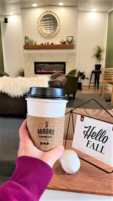 Additionally, if you are up for a very short (5 minute) drive across the border into Wisconsin, check out 3 Arrows Coffee Co. Where they roast their own coffee and have the best space with a fireplace and plush seating. It’s a must stop if you are a coffee lover.